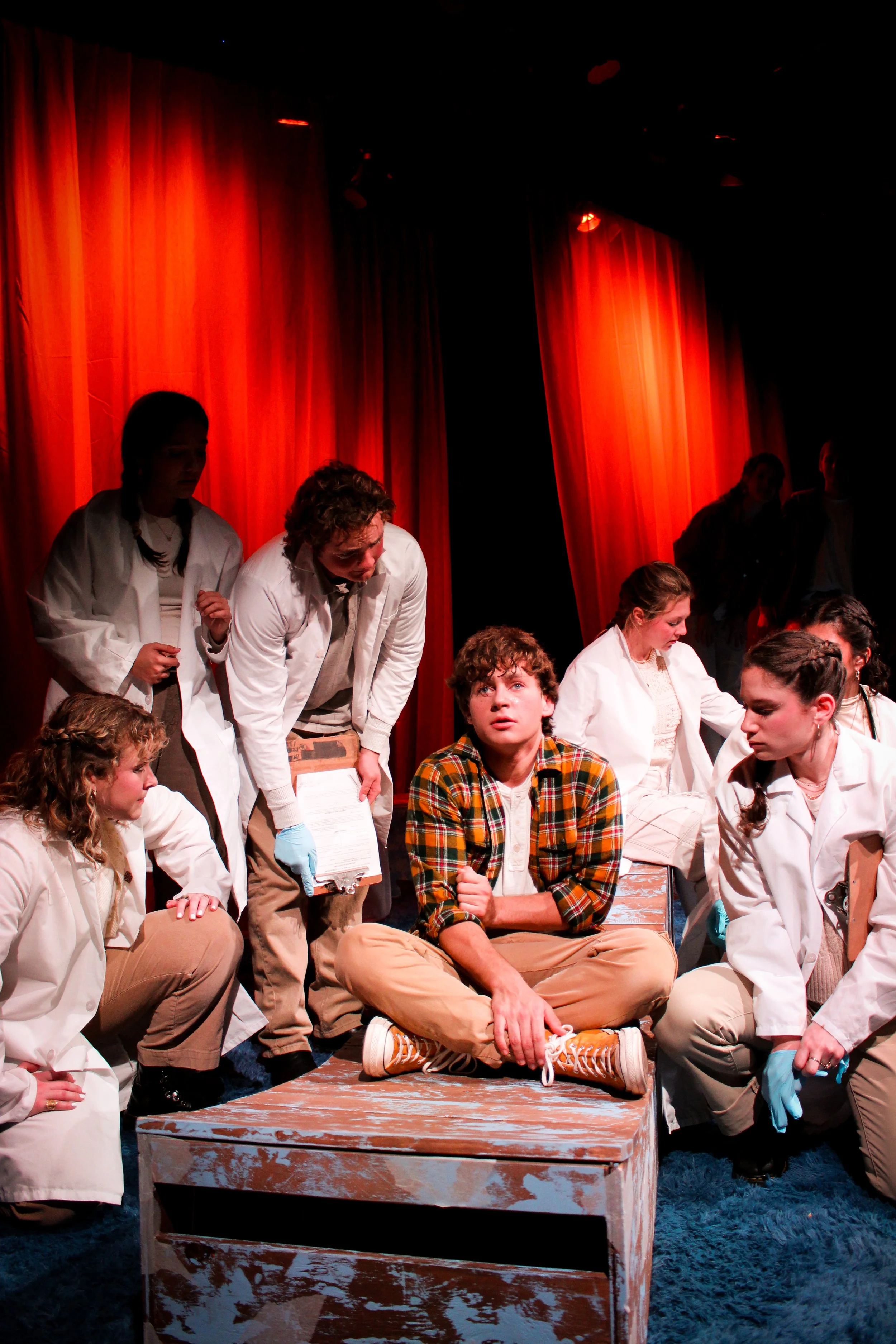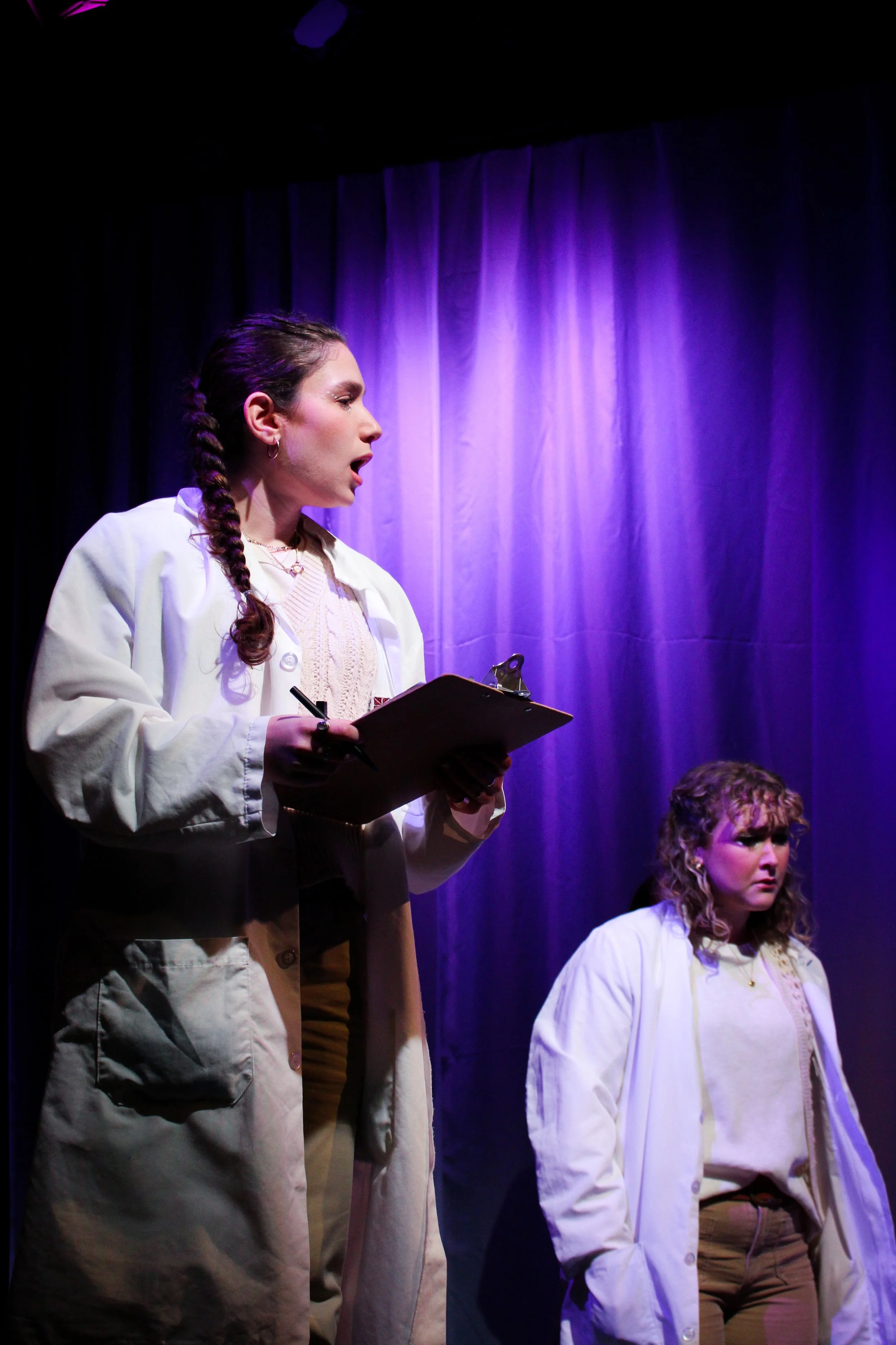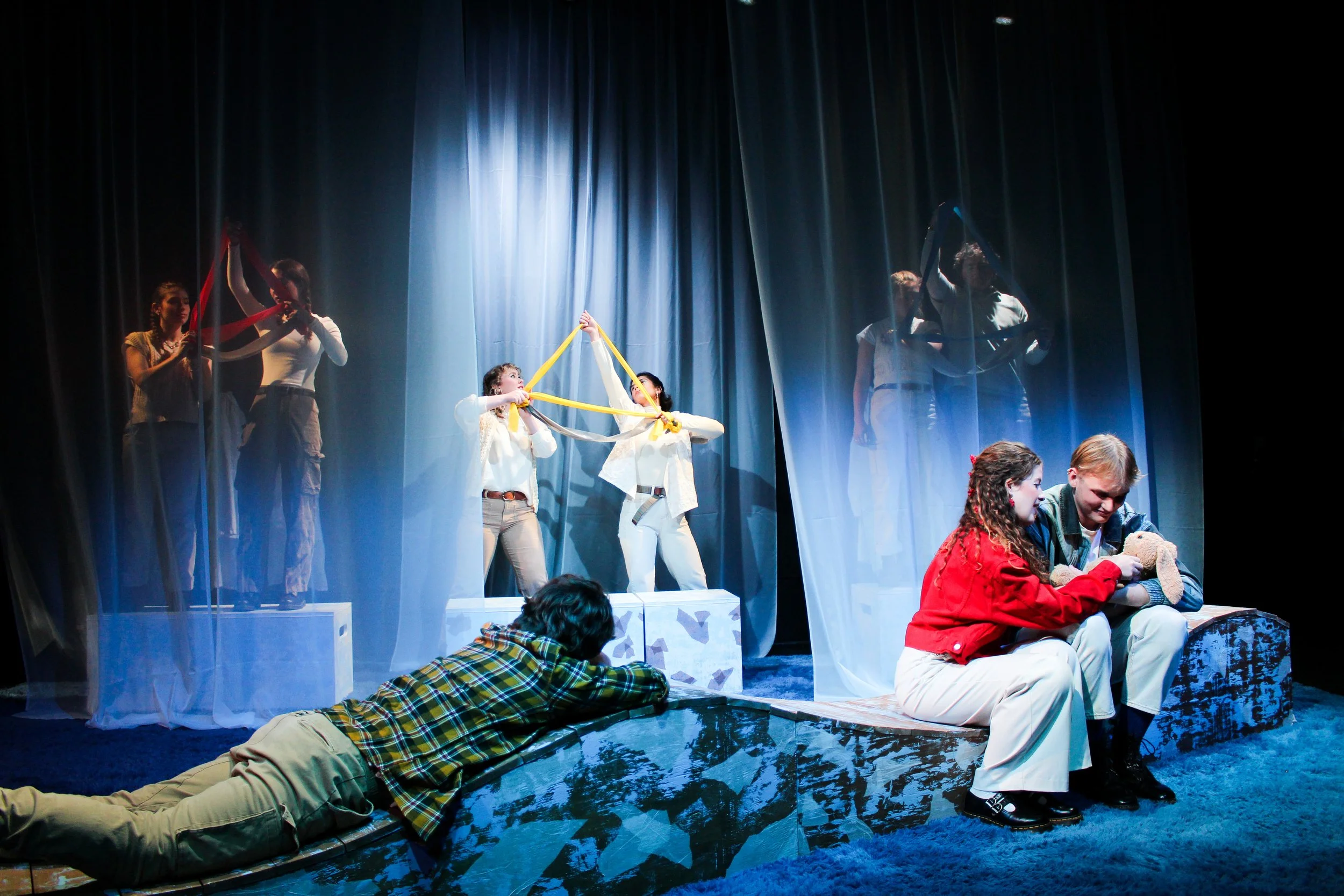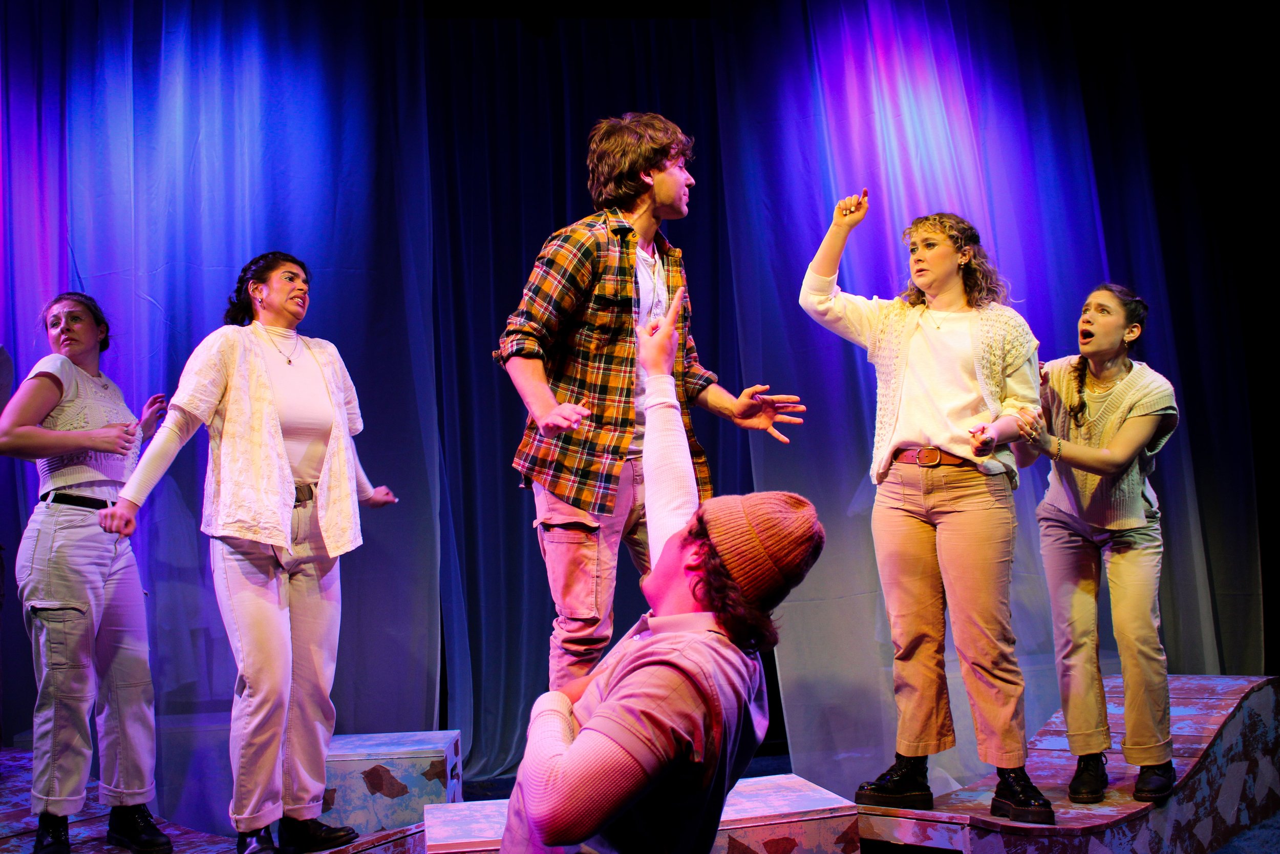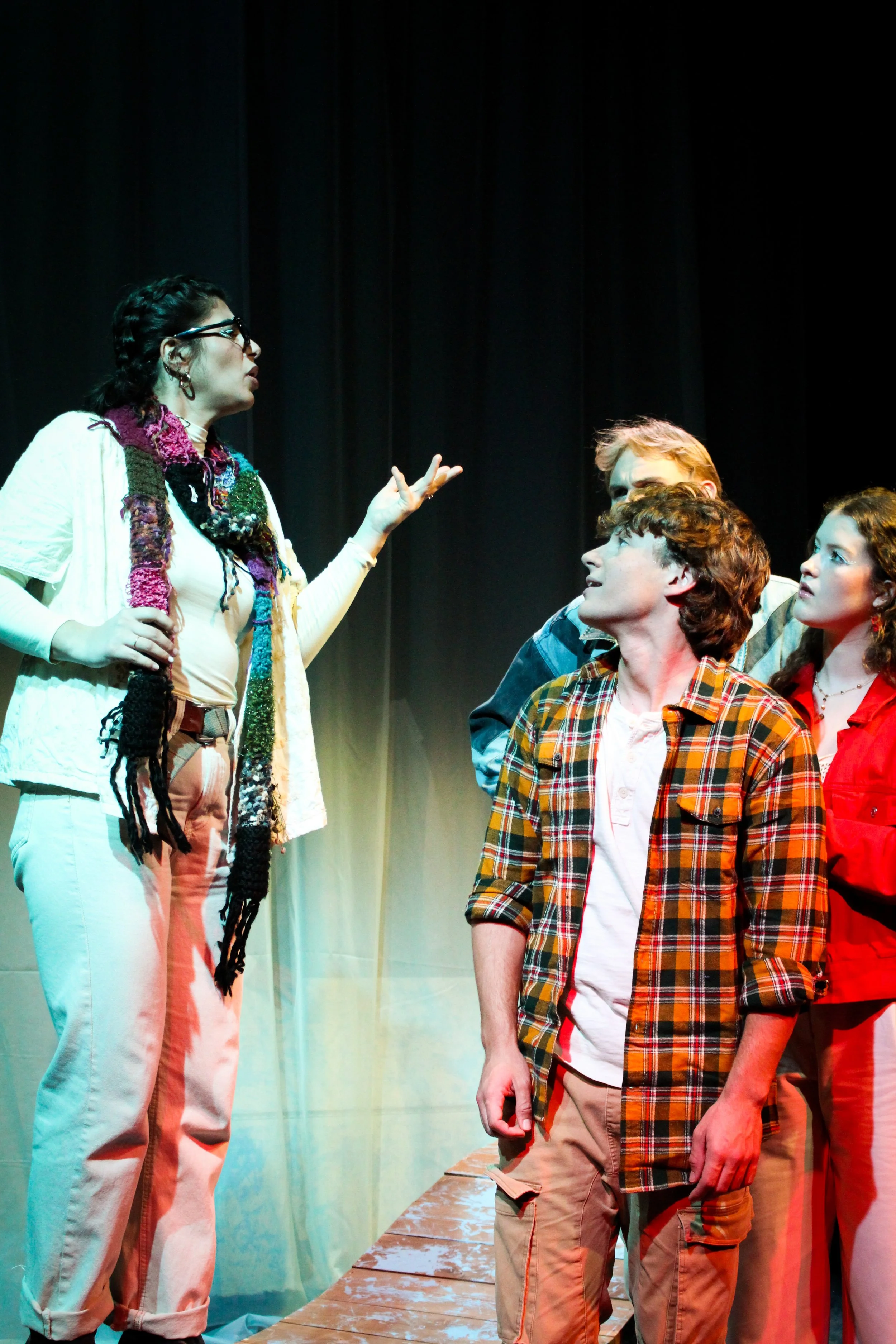 It has been an absolute honor to work with this amazing production and creative team. For many of us, this was our first time designing, dramaturging, or stage managing a show of this caliber. We have loved this journey and embraced this process as a learning experience. I started this process by encouraging us to all embrace what we don’t know and ask lots of questions. This mentality has allowed us to explore, learn, and grow together. The cast and I have had so much fun navigating how to impact the audience with this story using our techniques we have learned in class. This process has been a great practical application of my understanding of directing and acting technique. There are very clear techniques that can be used to elevate theatrical work, and these have been an incredible case study on how I can identify these techniques and where they will best serve the work. This journey has also allowed us to see the product of getting out of our heads and putting our heart into the work.